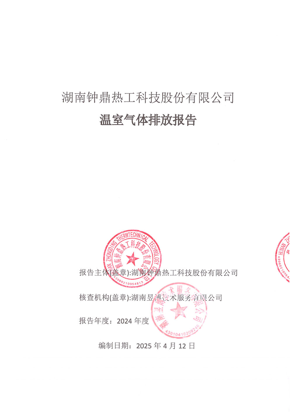 湖南鐘鼎熱工科技股份有限公司 溫室氣體排放報(bào)告